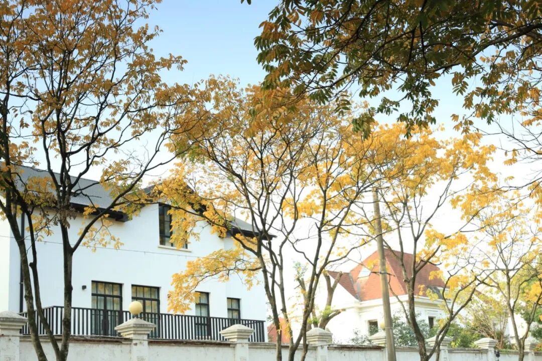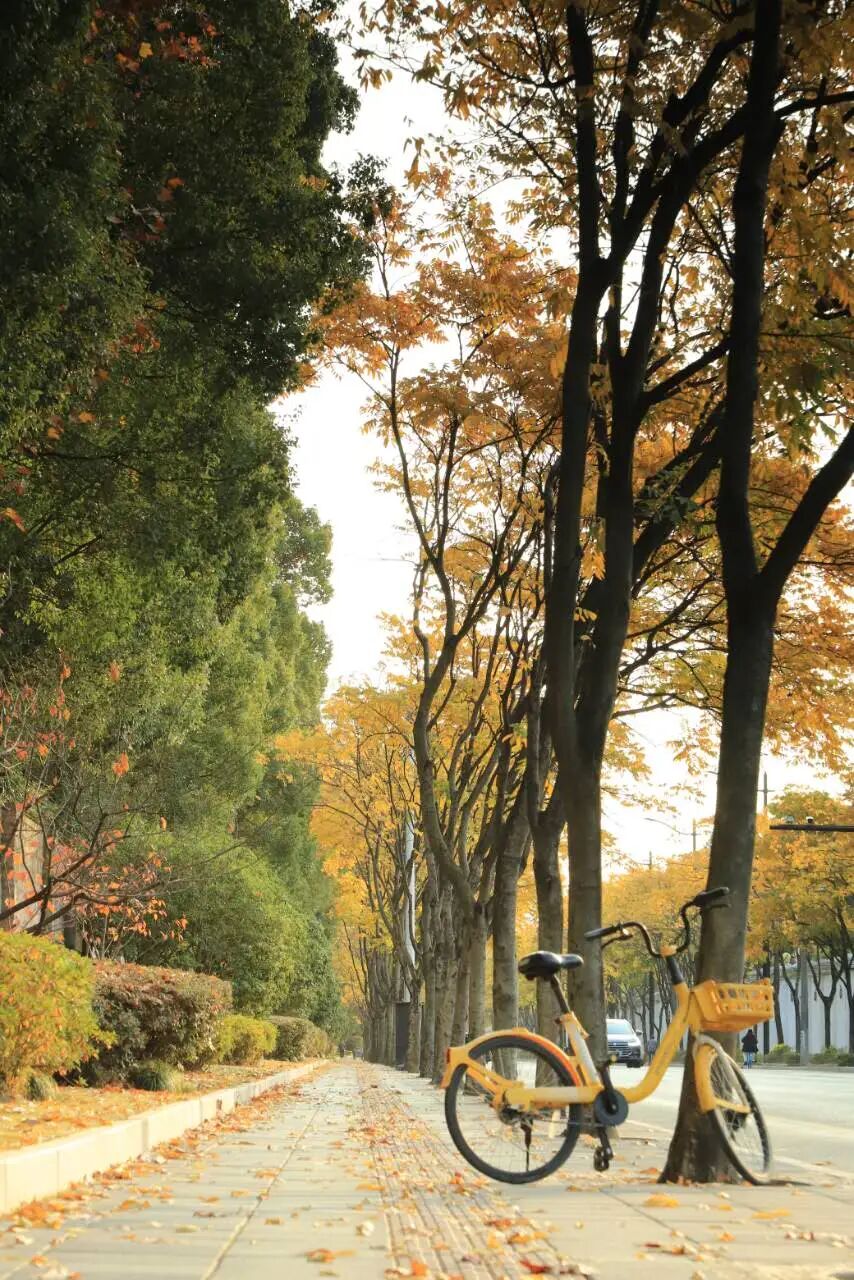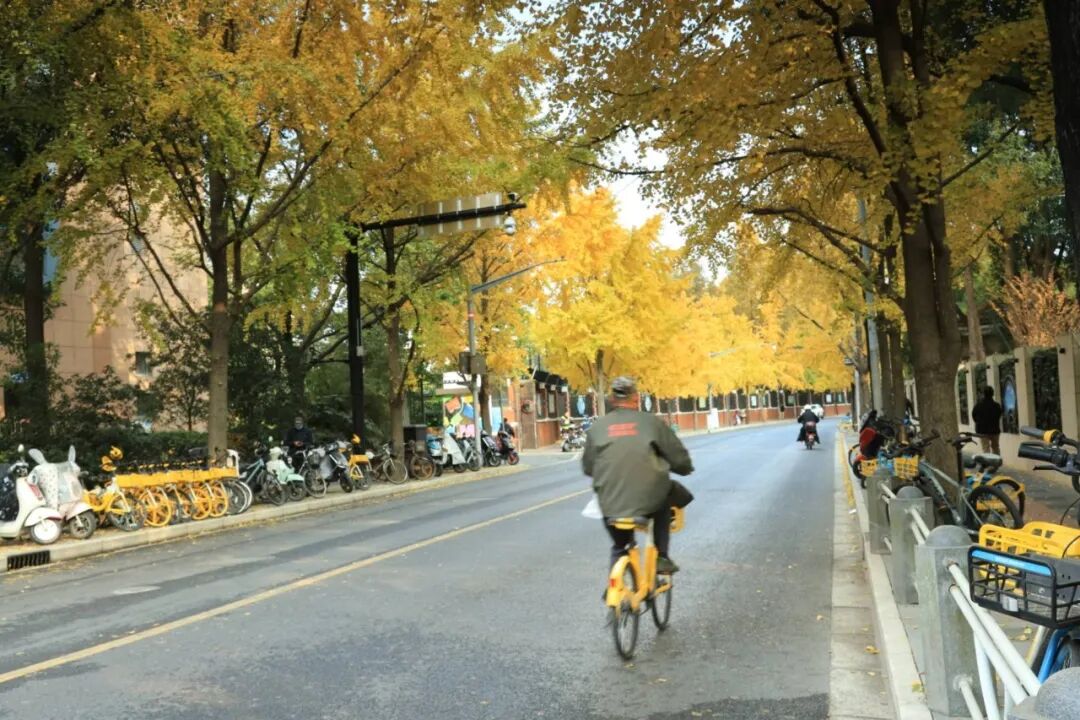 龙溪路的秋色由无患子叶描绘。叶片从淡黄渐变深金,为路面铺就斑斓色彩。落叶与沿街建筑风格呼应,灵动自然与沉稳人文交织,每一步都可能遇见秋日惊喜。