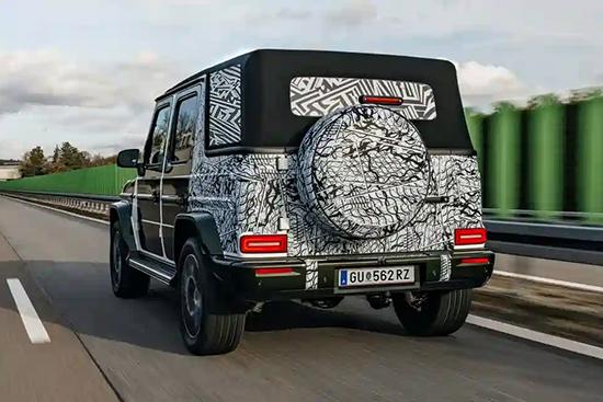 从此次曝光的谍照可以看出,全新奔驰G级敞篷版在整体设计上基本延续了普通版车型的风格,主要差异集中在C柱之后——该区域采用了软顶敞篷材质,同时配备了小尺寸的后窗。细节设计方面,新车依旧保留了外挂式备胎这一经典元素,标志性的U型尾灯也得以传承。