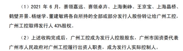 2021年6月,赛领嘉远、赛领卓卉、上海衡峥、王京宝、上海晶桥、鹤壁开景、杨继学、董建敏等股东,将所持全部或部分天海电子股份转让给广州工控,使得广州工控获得了公司43%的股权。