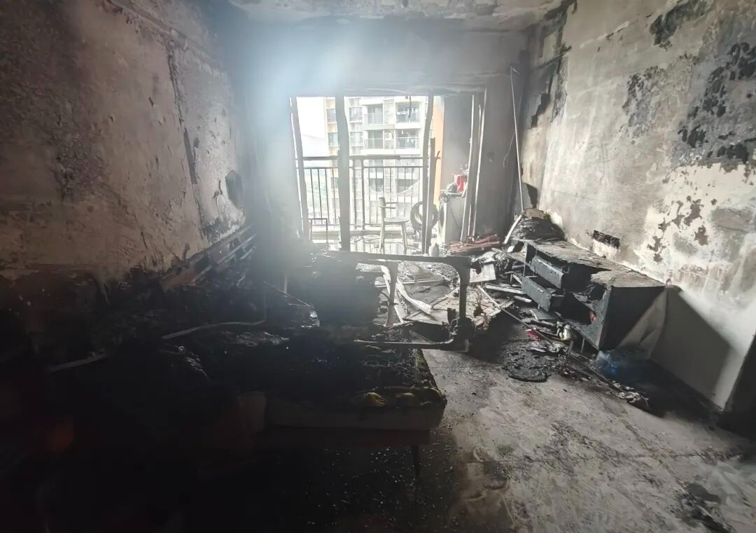 据了解,着火住宅的屋主发现起火后,立即叫醒家人。在尝试自行扑火无果后,众人迅速疏散到地面并报警求助。消防员到场后迅速行动:攻坚小组利用室内消火栓铺设水带,压制火势蔓延;搜救小组对着火楼层及相邻楼层展开搜救,在起火住宅对面发现一名被困住户,随即护送其沿疏散楼梯安全撤离至地面。