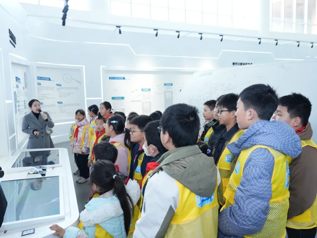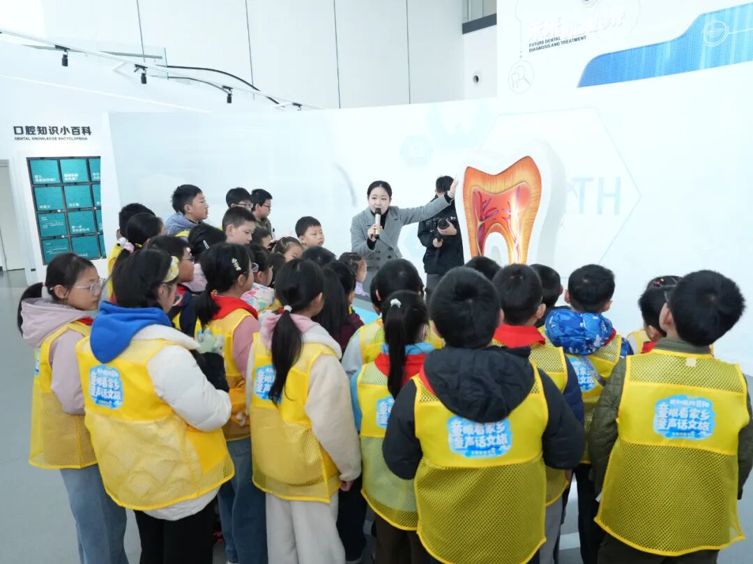 在讲解员引导下,孩子们首先通过巨幅动态屏了解“中国牙谷”从无到有的发展历程。从单颗牙齿的“诞生”到全产业链构建,从国内领先的口腔设备研发到深化国际医疗合作,两百多平方米的产品展示区里,隐形牙套、电动牙刷等小件产品与口腔显微镜、数字印膜仪等大型设备整齐陈列,这些远销全球50多个国家和地区的“资阳造”产品,让孩子们真切感受到家乡产业的硬核实力。