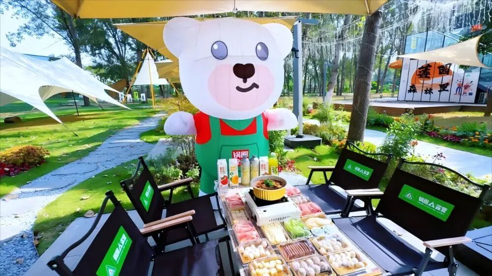 露营经济爆发但痛点突出:消费者筹备繁琐、器具闲置;营地食材损耗高、营收依赖节假日。锅圈将社区餐饮能力延伸至户外,推出1-6人露营套餐,食材净菜预处理,开箱即烹。还创新“露营店”模式,联动营地提供食材+工具一站式服务。