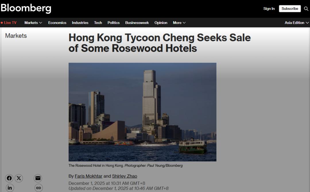 此次出售范围极广,就连刚获评全球最佳酒店、估值高达159亿港元的香港瑰丽酒店,也可能被纳入出售清单。