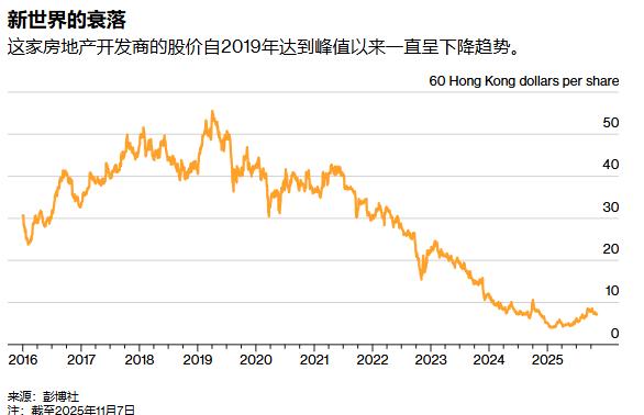 2025年中期,新世界的净债务与股东权益之比已高达98%。为缓解危机,公司今年6月签署了882亿港元的再融资协议,但11月又不得不提议置换部分美元债券,甚至要求债券持有人接受最高50%的本金减记——这在香港资本市场几乎等同于公开承认资金链紧张。目前,新世界股价较2019年峰值已下跌87%。