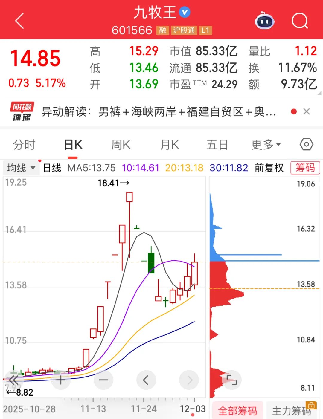 然而,这场股价狂欢转瞬即逝。11月21日后,九牧王股价连续两个交易日跌停,此前的上涨势头戛然而止。