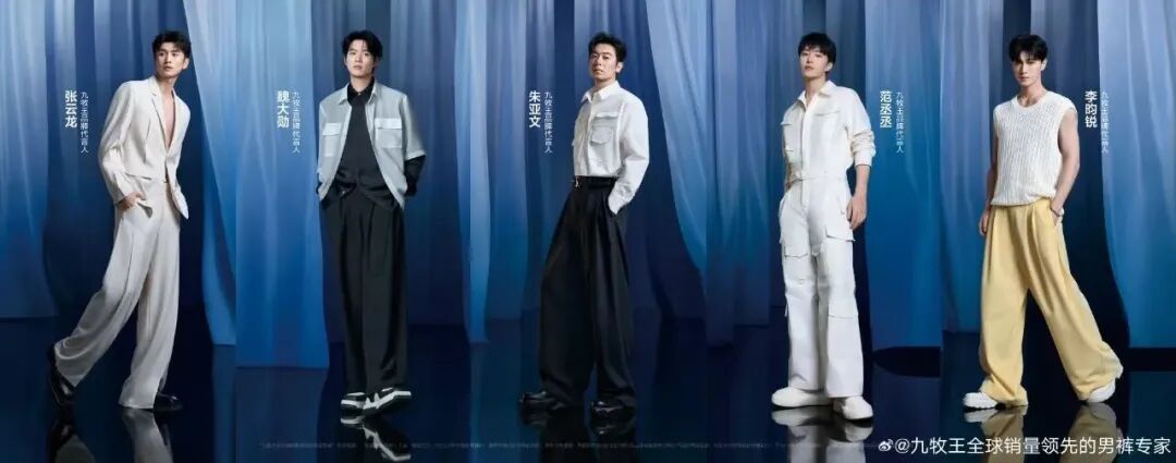 近年来,九牧王推进DTC模式、扩张直营门店、推出“品质五裤”系列、签约多位代言人,试图吸引年轻客群,摆脱传统品牌形象。