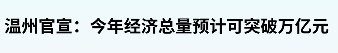 近日,浙江温州官方在新闻发布会上透露,温州GDP已接连跨越8000亿、9000亿元两个重要台阶,今年预计将突破1万亿元大关。