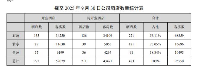 君亭酒店并非未察觉直营模式弊端。2024年5月业绩会上,高管坦言直营项目扩张导致租赁费用增加,新开门店爬坡期也加剧成本压力。同时,行业马太效应凸显,直营模式制约了扩张速度——截至2025年9月末,君亭旗下三大品牌开业272家、客房5.2万间,待开业项目合计483家、客房超9.5万间,而华住、锦江等头部集团开业量均破7000家,亚朵也在冲击2000家规模,君亭被指“行业地位边缘化”。