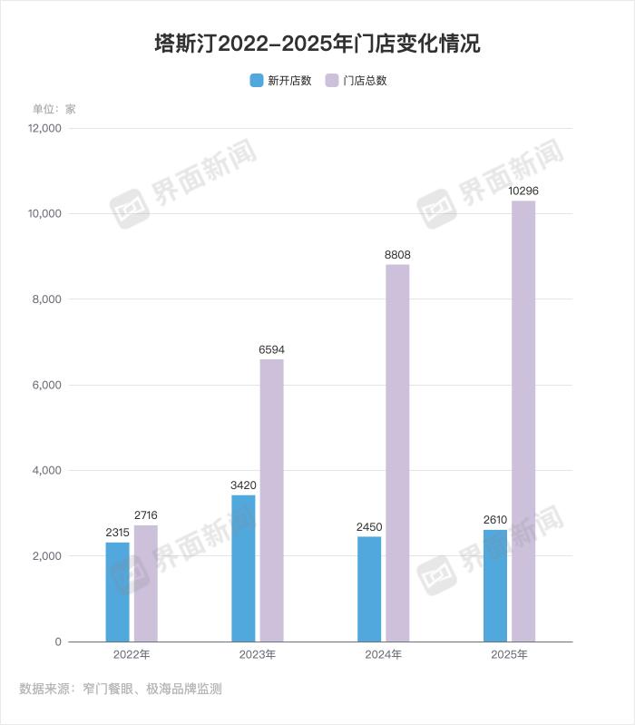 塔斯汀2022年-2025年门店变化情况 图表制作:界面新闻 马越