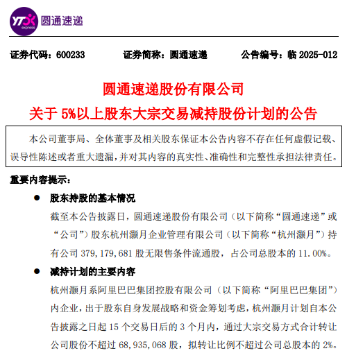 2024年底以来,阿里剥离非核心资产的节奏明显加快:2024年12月出售银泰百货全部股份,套现约74亿元;2025年1月以最高123亿元出售高鑫零售78.7%股权(高鑫零售含大润发、欧尚品牌,曾是阿里新零售核心但业绩持续下滑);2月和4月两次减持中金公司股份,合计套现约16亿元;3月及6月减持圆通速递,累计回笼资金近20亿元;此外还减持三江购物、万达电影、红星美凯龙等,涉及零售、物流、影视、金融多领域。经统计,这些资产出售总额已超300亿元。