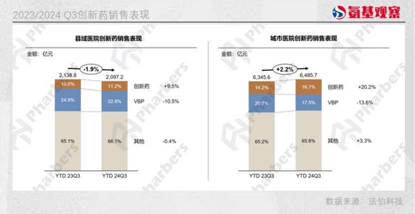 近两年,县域医院渠道创新药销售额的增长为整体市场发展注入了动力,但与城市医院相比仍存在明显差距。最新统计显示,县域医院创新药销售规模占比和增速分别为11.2%和9.5%,远低于城市医院。