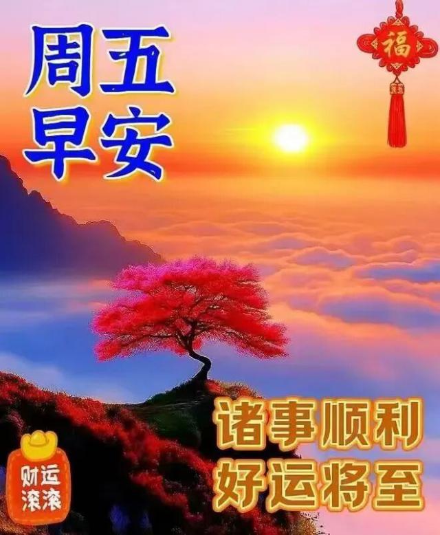 早安!每个清晨都是生活的新起点,愿你的健康如朝霞般明媚,幸福如清风般清新,平安如大地般坚实,喜乐如鸟鸣般悦耳,周五早上好!