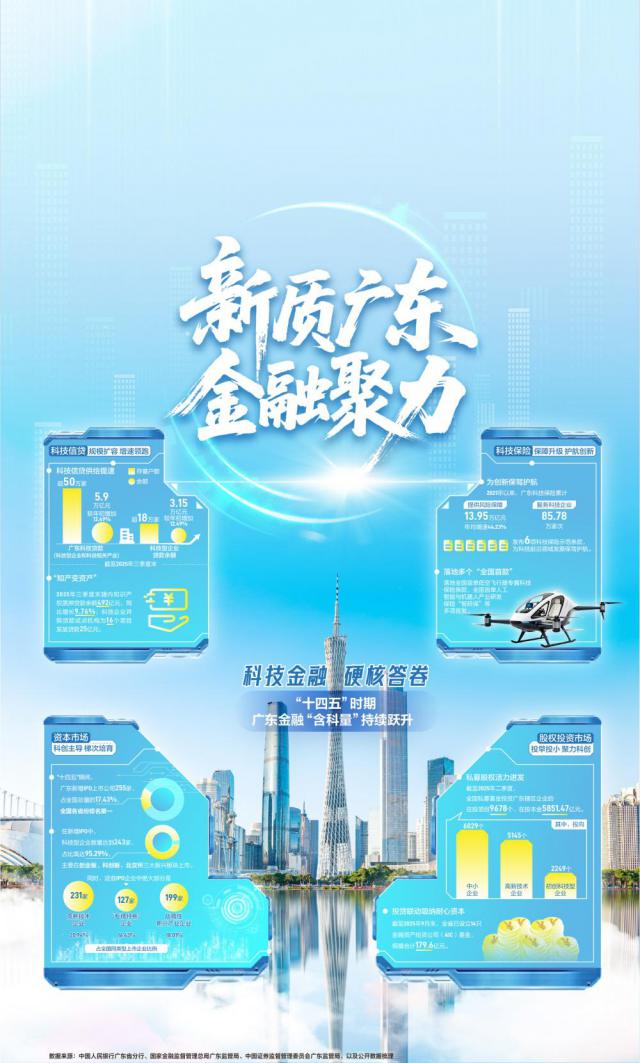 “十四五”期间,广东锚定培育新质生产力的核心目标,以科技金融深度融合为抓手,推动银行业、资本市场与股权投资协同发力,构建起覆盖科技创新全链条的金融服务体系,为高质量发展与科技强省建设注入强劲动能。