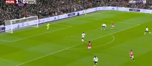 卡塞米罗在禁区外射门,皮球经西汉姆联球员折射后落到达洛特脚下,达洛特在禁区内停球后抽射破门,帮助曼联1-0领先。