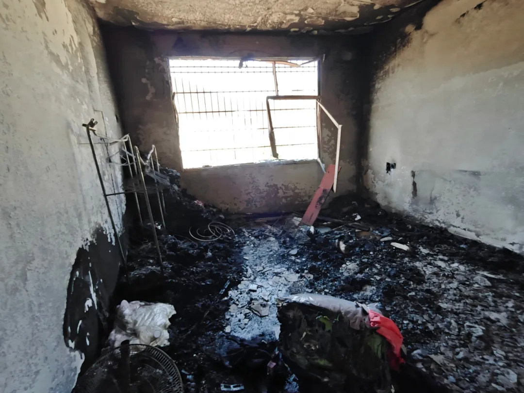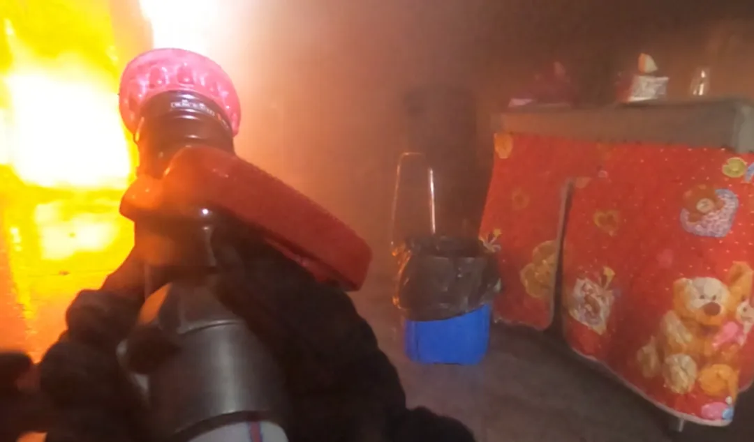 经现场勘查,起火建筑为七层砖混结构自建房,总面积约1000平方米,起火点位于六楼卧室,火势正处于猛烈燃烧阶段。所幸整栋楼人员已全部疏散,未造成人员伤亡。经过10多分钟扑救,火势被有效控制。