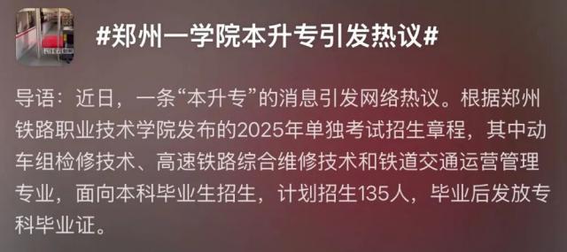 这股“精准就业”浪潮甚至蔓延至高考志愿填报。今年,深圳职业技术大学投档线超过双一流院校华南农业大学,因其就业率达98%、毕业生平均月薪7632元;郑州铁路职业技术学院面向本科生“本升专”招生135人,因对口铁路系统就业率超90%而迅速报满。
