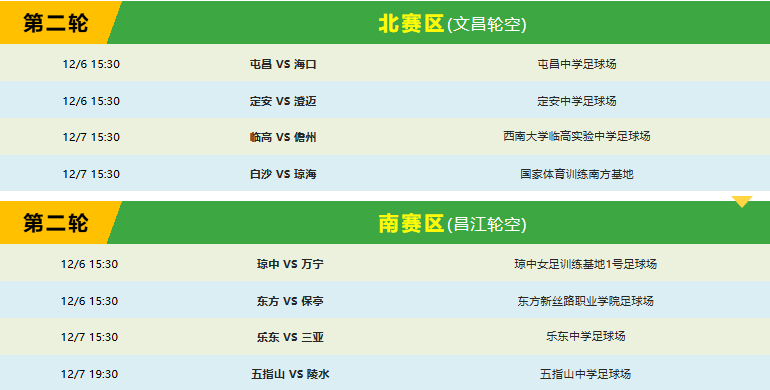 12月6日起,“启航自贸港”第一届海南省城市足球联赛第二轮比赛即将拉开帷幕。详情(来源:海南卫视)