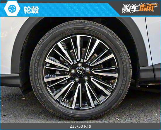 轮毂方面,舒适型、豪华型标配18英寸铝合金轮毂(轮胎235/55 R18),尊贵型、旗舰型升级19英寸(轮胎235/50 R19)。