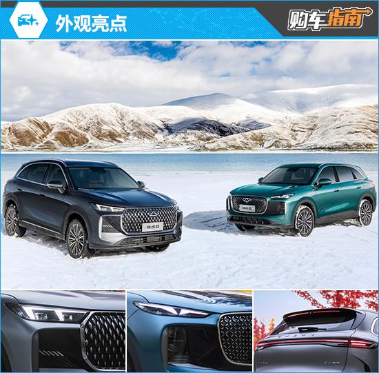 外观采用“自然力量美学”设计,提供虎款、豹款双造型:虎款配多边形中网与雾灯区倾斜线条,气场强劲;豹款用分体式大灯+交叉镀铬格栅,更显时尚运动。侧面与尾部线条流畅,贯穿式尾灯搭配“CHERY”标识,下包围装饰因版本略有差异。