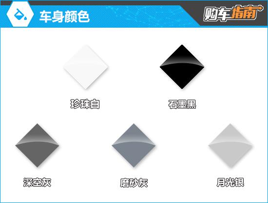 车身颜色有5种可选,磨砂灰(3000元)、月光银(1000元)需选装,推荐经典的珍珠白、石墨黑,月光银质感出色但选装价值见仁见智。