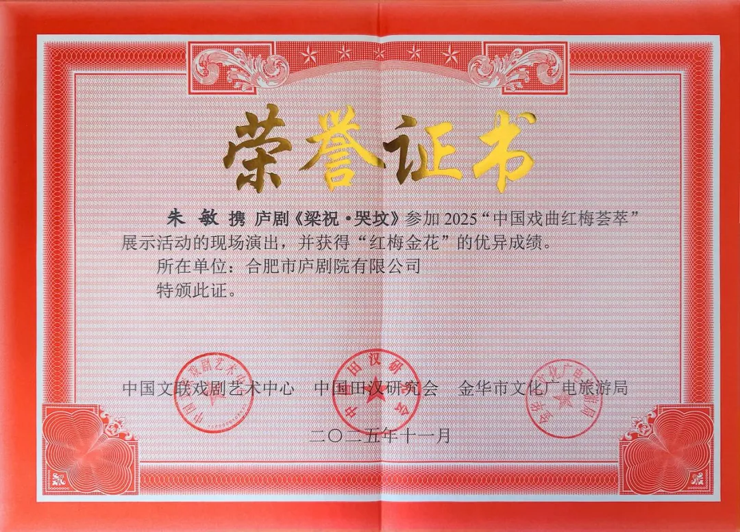 喜讯!合肥庐剧演员朱敏斩获“红梅金花”荣誉
