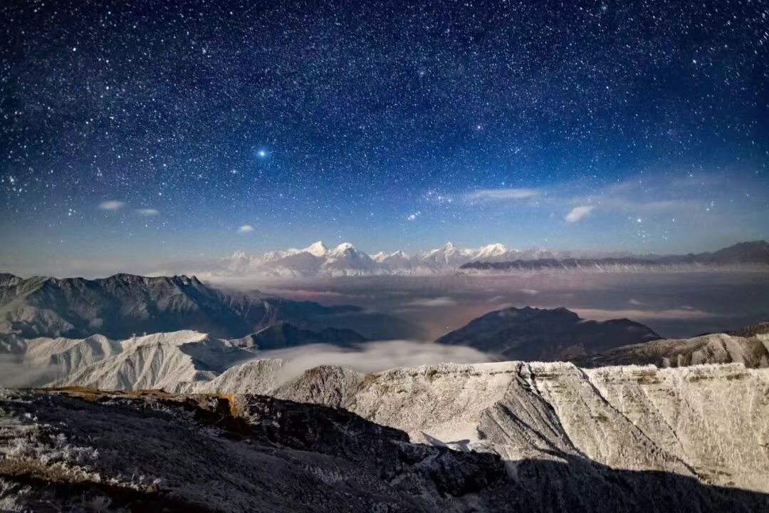 第二站是牛背山景区。从冷碛收费站驶出,就正式开启了通往牛背山的旅程。作为“中国最大观景台”,牛背山以磅礴的云海、璀璨的星空和360度环绕的雪山美景闻名。登上山顶,脚下云浪翻涌,四周贡嘎群峰像剑一样直指苍穹,日出时分霞光染红天地,夜幕降临时银河仿佛近在咫尺。
