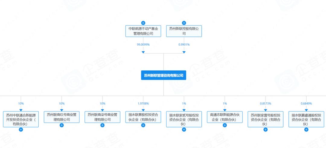 它由苏州新联管理咨询有限公司全资控股,而苏州新联隶属于中联前源不动产基金管理有限公司(简称“中联基金”)。据媒体报道,中联基金背后股东阵容强大,包括广州市政府、陕西省国资委、铜川矿务局等重量级国资背景投资方。