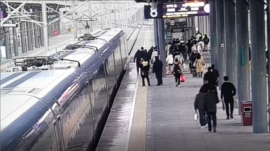 “不要开车!”现场客运值班员梁康发现险情后,立刻冲向孩子坠落处,同时用对讲机紧急联系司机,成功阻止列车启动。