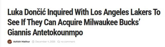 北京时间12月5日,福克斯体育记者卢・卡内利斯带来一则重磅消息:NBA球星卢卡・东契奇曾向洛杉矶湖人方面询问,球队是否具备从密尔沃基雄鹿交易得到字母哥的能力。据悉,字母哥在休赛期就流露过离队想法,纽约尼克斯是他的第一心仪下家。