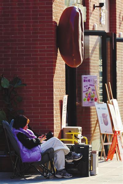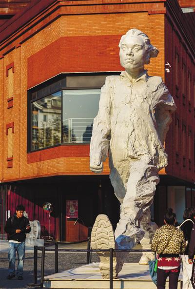 体型庞大的“行人”雕塑,已然成为街区里极具辨识度的地标。