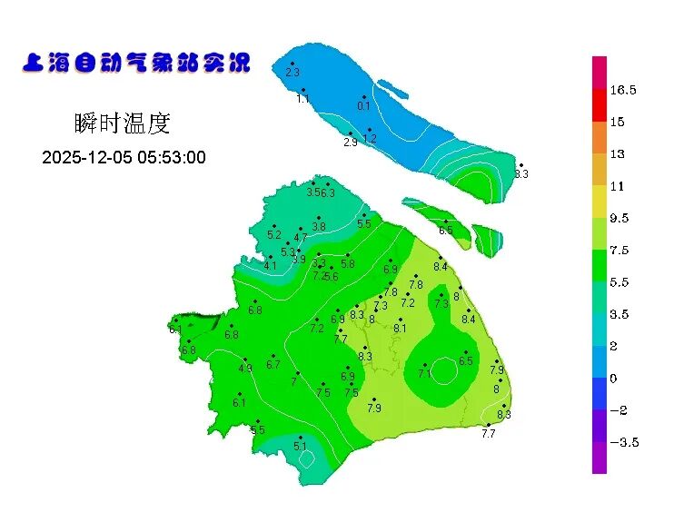今日申城多云转晴,清晨各区温差显著,崇明部分站点气温跌破冰点,其余区域在3至9℃之间;预计今日最高气温可达14℃,白天气温将稳步回升。上午以偏北风为主,下午转为偏东风,风力均为3到4级。空气相对湿度在65%至25%之间,天气较为干燥。