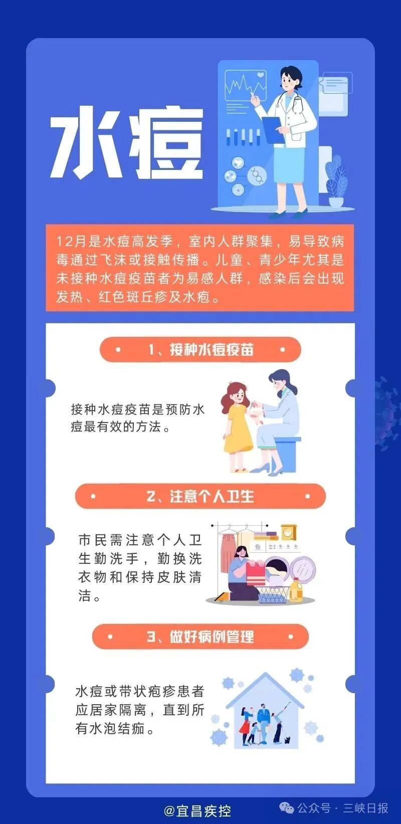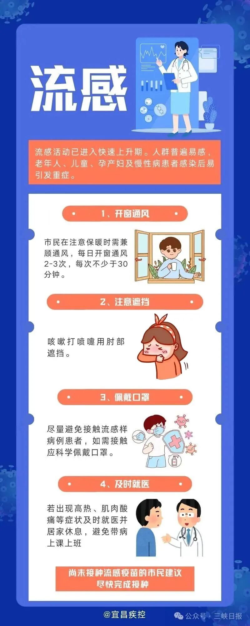 宜昌疾控特此提醒广大市民,本月需重点防范流感、手足口病、水痘、诺如病毒感染以及输入性疟疾这几类疾病。