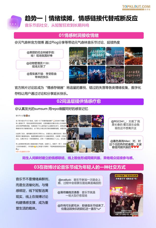 “即使音乐节结束了,这段快乐的回忆也会一直留存。”这类留言频繁出现,说明音乐节正成为缓解焦虑的“情绪缓冲带”,而微博则是这份情绪得以延续的数字载体。
