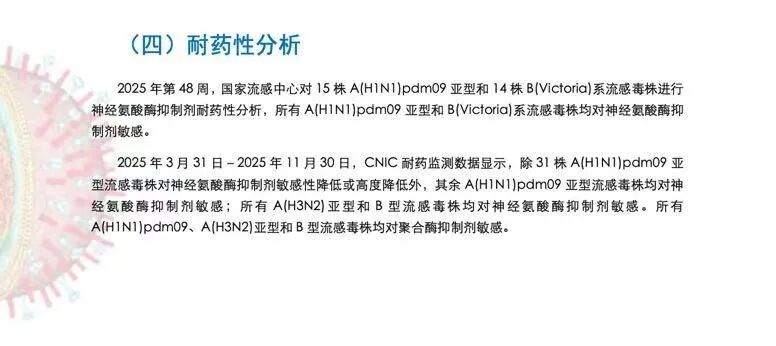 张素琴指出,耐药性需严谨实验数据验证,病毒株每年变化,药物敏感性不一定都高,可能是基因突变、病毒毒力强或载量高导致敏感性下降,但整体治疗效果仍较好。