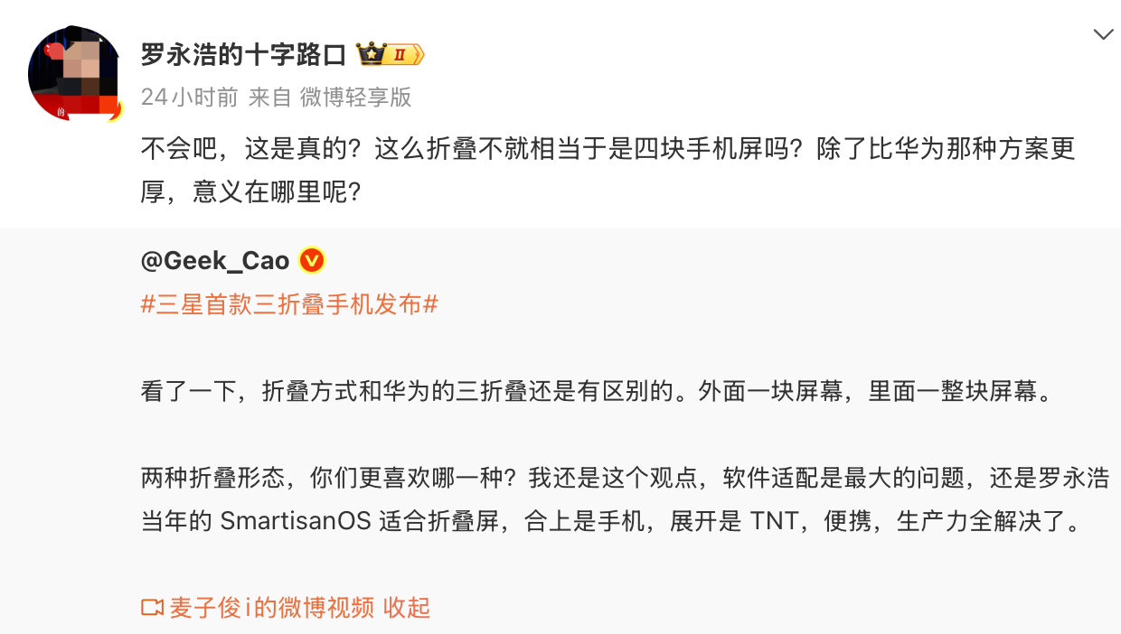 01 售价1.7万的三星三折叠手机遭罗永浩质疑