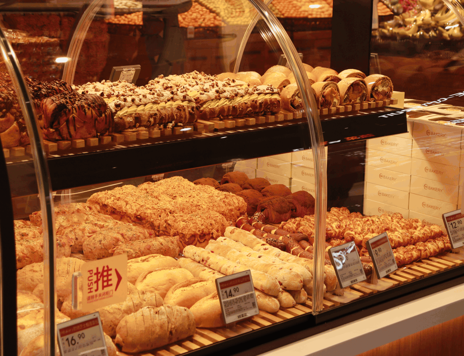 烘焙区经过全面扩容,引入众多特色爆品,主打健康概念与高性价比。主推的半斤榴莲肉榴莲千层、核桃满满、丰收的喜悦欧包等烘焙产品深受欢迎。尤其是25粒草莓奶油盒子蛋糕,专为甜食爱好者打造:精选当季新鲜草莓手工现切,保留脆嫩爆汁的口感,搭配蓬松的戚风蛋糕、顺滑轻脂奶油和自制酸甜草莓酱,四层丰富口感与超高颜值,使其迅速成为治愈系网红甜品。