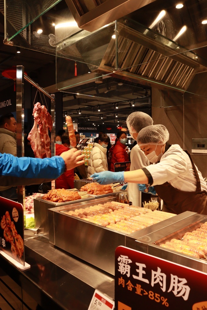 值得一提的是,巴南万达店增添了浓厚的市井烟火气,现场制作现烤羊肉串、肉肠、现煮抄手饺子和麻辣烫。其中,现烤羊肉串选用新疆天山牧场的正宗小羔羊,坚持现切、现串、现烤的传统工艺,调料采用新疆伊犁河谷的紫皮孜然与安集海红辣椒,肉质鲜美无需腌制,让山城市民不用远行,在永辉就能吃到地道的新疆风味。