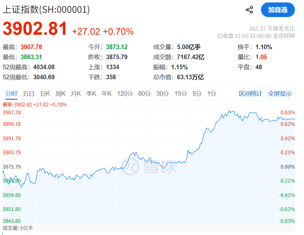 首先可以看到,午后13:30,在没有明显前兆的情况下,A股三大指数同步出现直线拉升的走势。