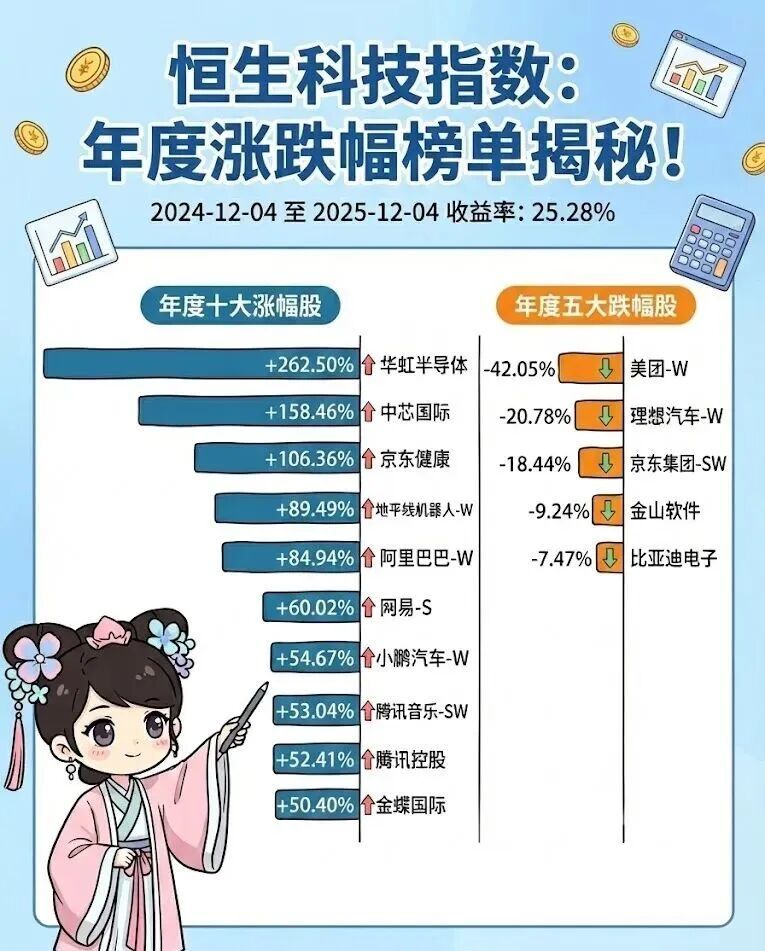 不过从数据能看出来,恒生科技指数内部的分化很严重。像中芯国际、华虹半导体这些乘着芯片、互联网医疗、AI等领域东风的企业领涨,而美团和京东则因为外卖大战的拖累,业绩承压,股价出现了回调。