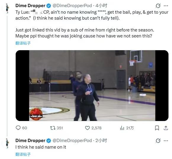 快船自媒体Dime Dropper发推称:"泰伦卢曾在训练场上,隔空怒斥保罗拿球执行战术的方式。"