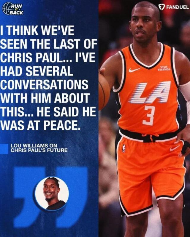 前NBA球员路威也表示,保罗已经打完了职业生涯的最后一战。他今夏休赛期选择加盟快船,就是为了能陪伴家人,并不想再次离开洛杉矶。