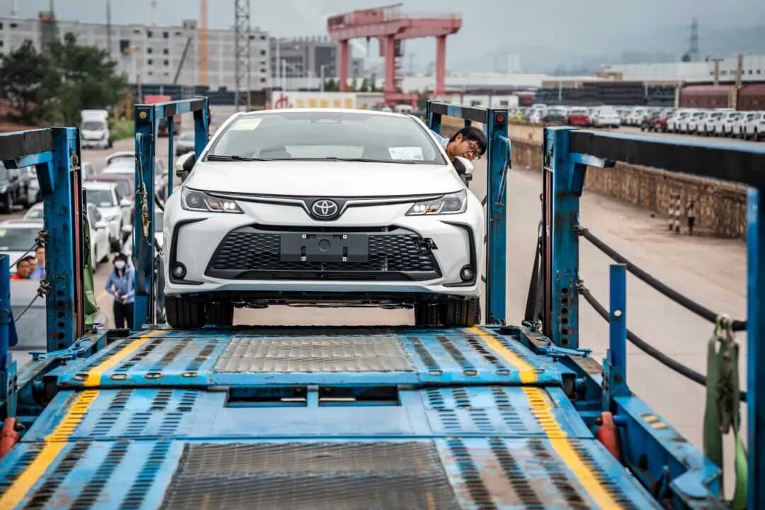 工作人员在云南桃花村铁路商品汽车物流基地装运商品车。新华社