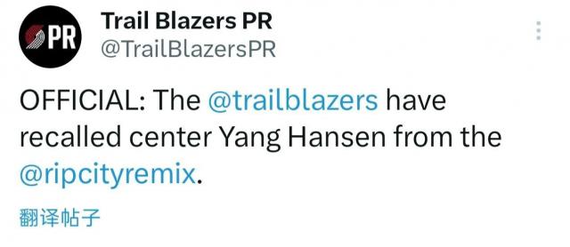 开拓者官方宣布,将从发展联盟下属球队混音队召回中锋杨瀚森。此前,杨瀚森在发展联盟对阵快船下属球队的比赛中表现出色,单场贡献20分、7个篮板、7次助攻、2次抢断和2次盖帽,展现出全面的竞技状态。