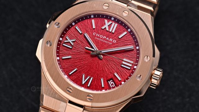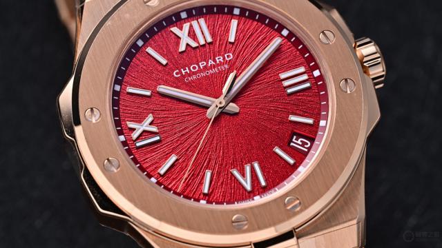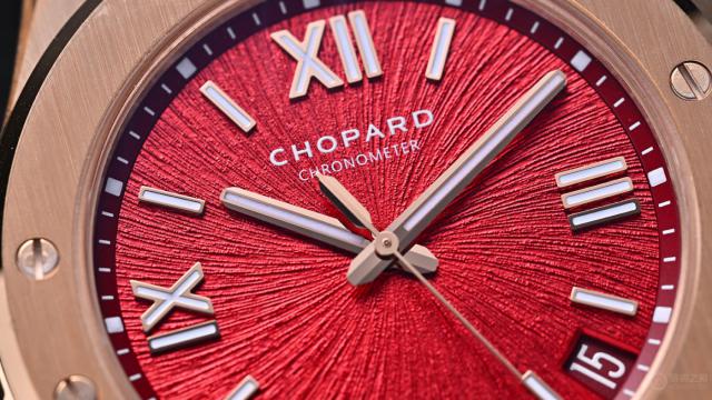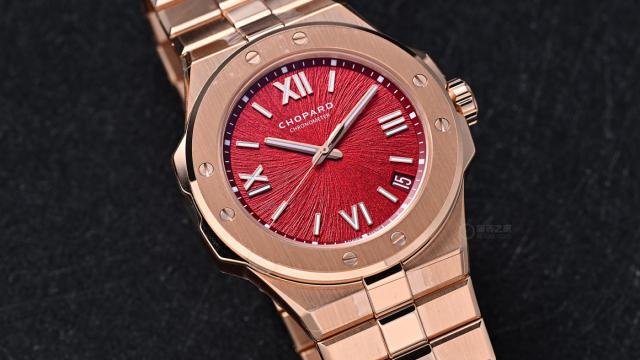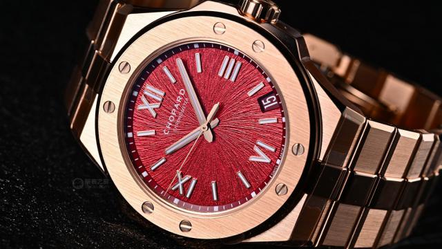 尽管外观奢华,这款腕表仍延续了Alpine Eagle系列“运动优雅”的定位,防水深度达100米,日常佩戴甚至轻度涉水都毫无压力。蓝宝石水晶玻璃经过双面防眩光处理,阳光直射下依旧保持极高的可读性。表冠同样采用18K玫瑰金材质,旋入式设计既安全又提升了整体防水性能。这样的配置让“丹霞红”腕表不仅是一件收藏品,更是一款真正可日常佩戴、陪伴左右的实用腕表。萧邦显然不满足于让它仅存于“美观”层面,更希望它在日常生活中同样可靠耐用。