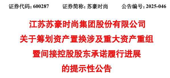 苏豪时尚拟推进重大资产重组 资产置换聚焦服装主业