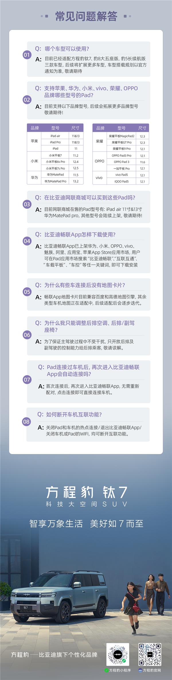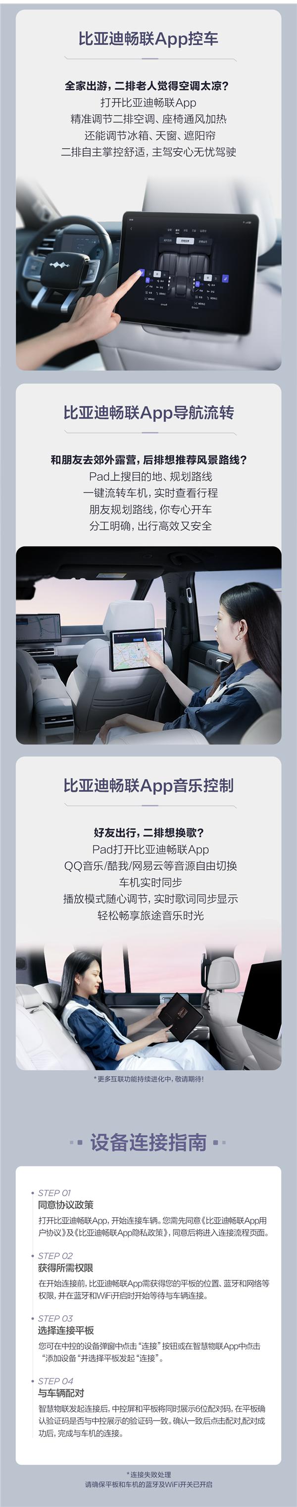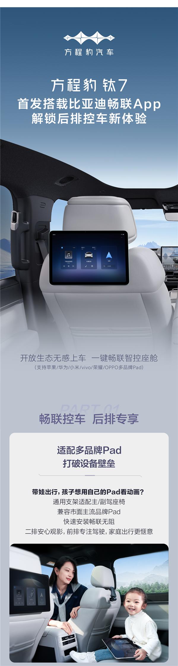 为确保该App运行流畅,比亚迪对苹果、华为、小米等多个品牌的主流平板(如iPad Pro、小米平板7 Pro等)进行了适配,同时配备了通用座椅支架,方便后排安装使用。