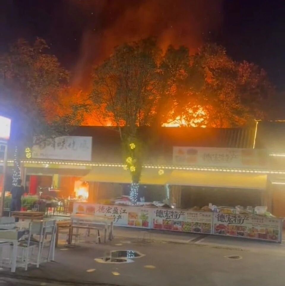 2025年10月17日夜间,云南德宏州芒市珠宝小镇内的一家烧烤店突发火灾,所幸未造成人员伤亡。