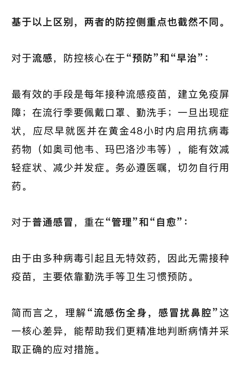 记住这句话:“流感影响全身,感冒多扰鼻腔”