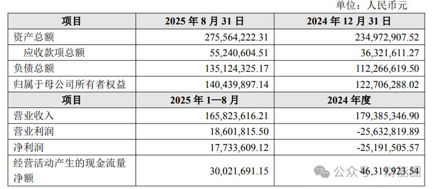 财务数据显示,截至报告期末,贝特莱的资产总额为2.75亿元,归属母公司所有者权益为1.4亿元。业绩方面,2024年公司实现营收1.79亿元,净利润-2.52亿元;今年前8个月实现营收1.66亿元,净利润1773万元。