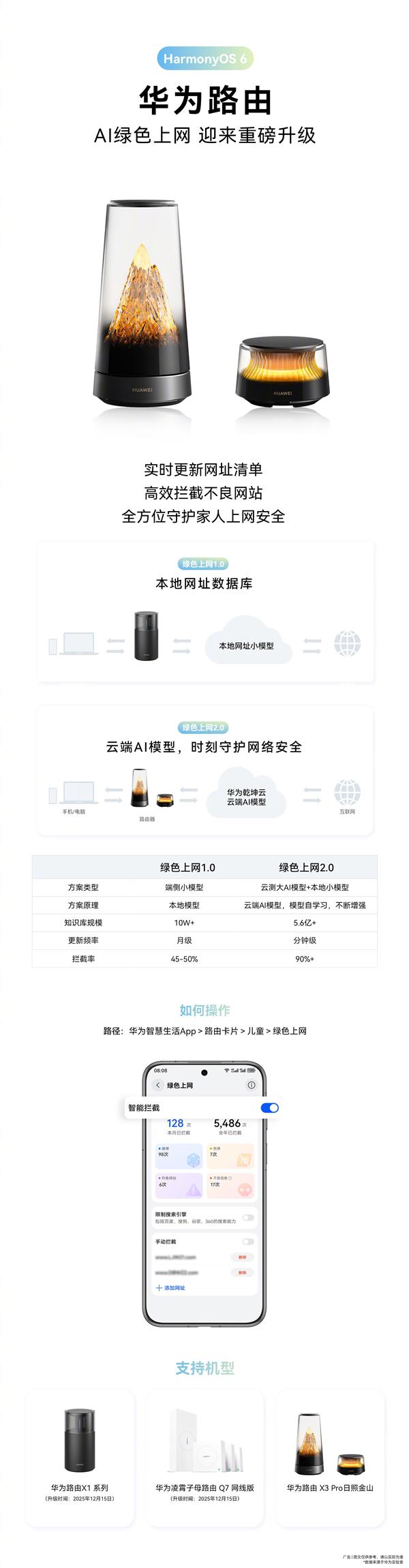 华为路由HarmonyOS 6升级:AI绿色上网2.0来袭 分钟级更新拦截不良网站